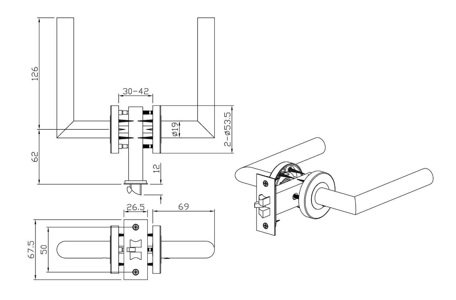 Seville Antique Brass Door Handle and Lock