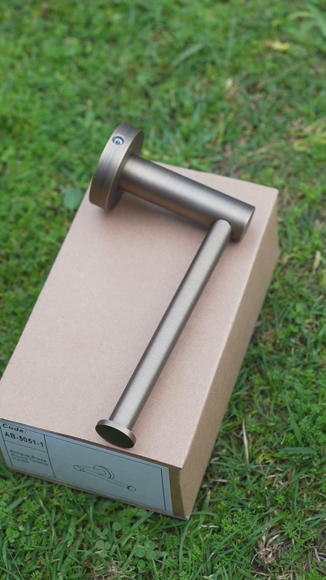 The Antique Brass Toilet Paper Holder (Model: AB-5051-1) offers a perfect blend of style and functionality for your bathroom. Crafted from high-quality materials, this toilet paper holder features an elegant antique brass finish that adds a touch of sophistication to your bathroom decor. Its sleek and minimalist design ensures a seamless look, while the durable construction provides reliable performance. This wall-mounted toilet paper holder is easy to install and a great way to keep your toilet paper organized and accessible.