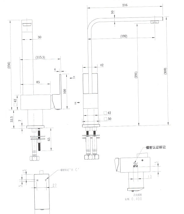 Measurement: 35mm cartridge Mixer Height: 309 Spout: 291(H)*192(D) WELS 4 Star, 6.5L/Min, T16802