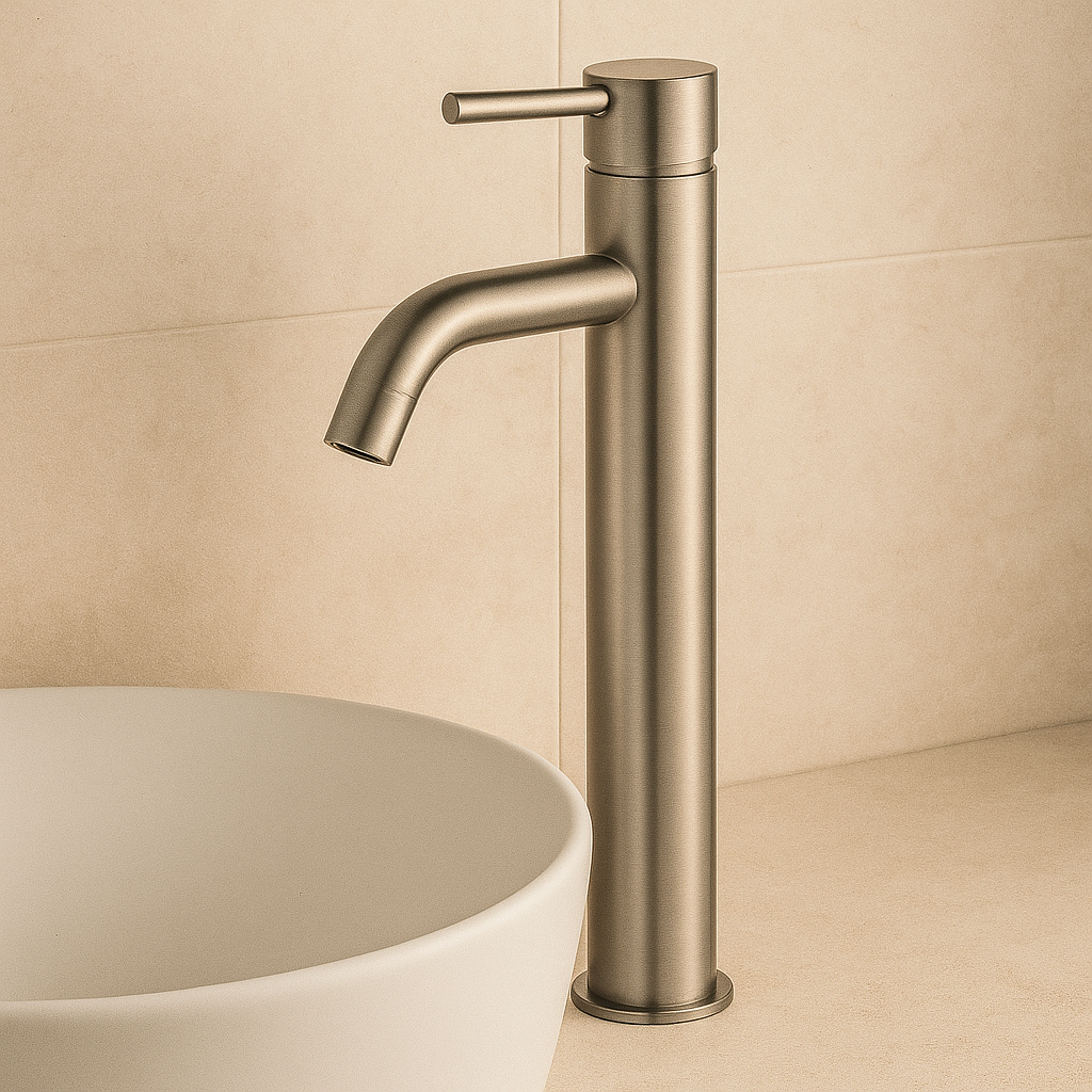 The BNA-70Q Brushed Nickel Tall Basin Mixer combines modern design, durability, and water efficiency, offering a sleek solution for your bathroom.