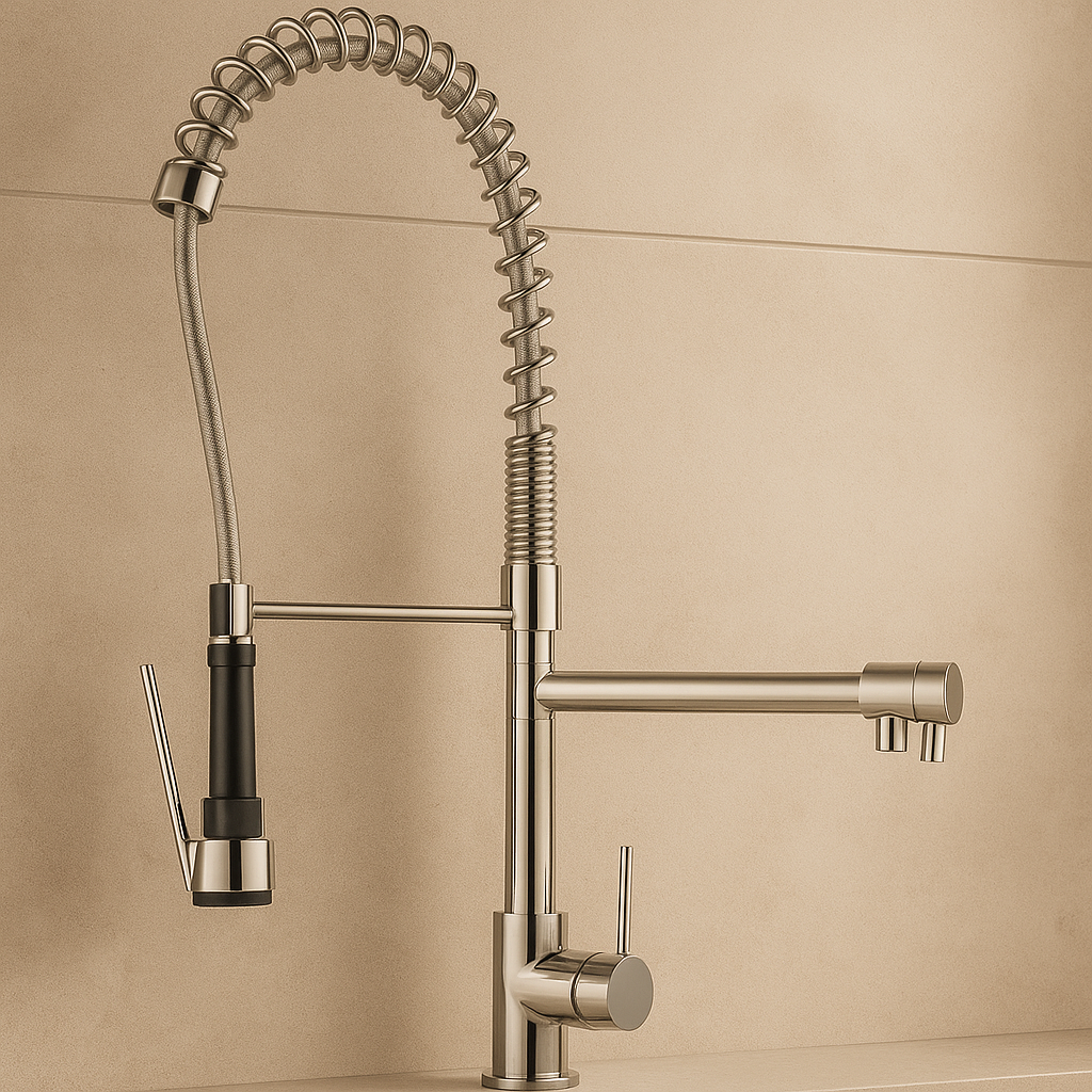 Enhance your kitchen's functionality and aesthetics with the Tall Vege Spray Mixer, a perfect blend of form and function.